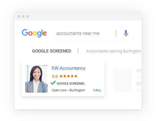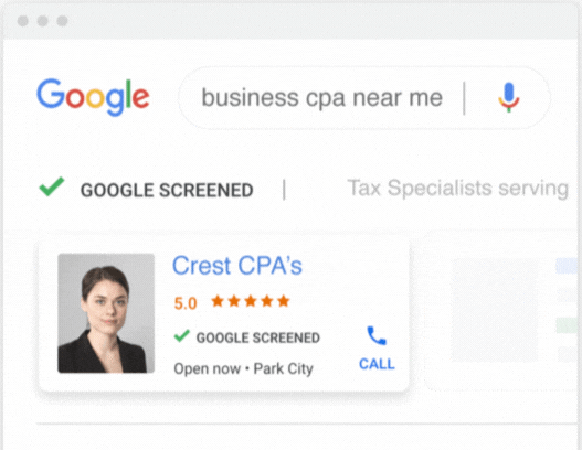 Leverage the strength of Google to attract local clients who are searching for the services you offer. When your phone rings, it will be a client specifically looking for your accounting services. Local Services Ads are the perfect fit for practices prepared to support these quality client inquiries with utmost care and service levels.
